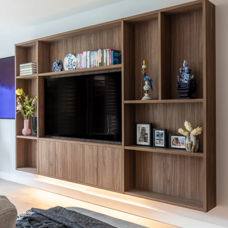 Ideaal voor de troepverzamelaar, speelgoedverzamelaars, administratieverzamelaars, dvd-verzamelaars, oftewel alle verzamelaars op de wereld: een (semi) dichte wandkast. Zo’n kast die precies past, want op maat gemaakt, die mooi is, want jij zoekt ‘m uit en dus super praktisch is, want jij kan er álles in kwijt. Vaak zijn deze wandmeubels of met een paar open stukken voor je waardevolle accessoires, of voor de favoriete accessoire van menig man: de televisie.