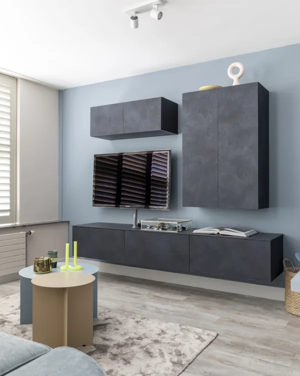 De kasten kunnen zwevend aan de muur worden gemonteerd, wat een ruimtelijk effect creëert en het gemakkelijk maakt om eronder schoon te maken! Een tip: voeg aan je nieuwe tv-kast op maat een elektrische haard toe! Dat is persoonlijk mijn favoriete onderdeel. Een elektrische haard brengt direct een gezellige, knusse sfeer in de woonkamer.