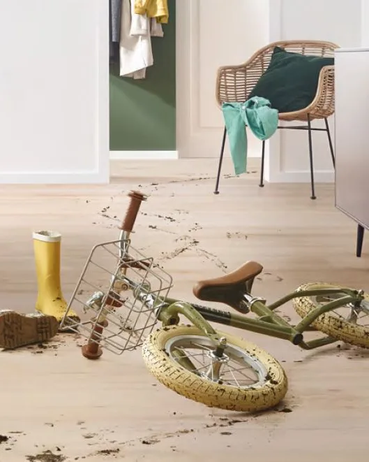 Of je nu rennende kinderen hebt, een partner die altijd met vieze schoenen binnenstormt of in de zomer zeiknat uit het zwembad naar binnen loopt; deze vloer doorstaat moeiteloos jouw dagelijkse taferelen. Je kunt erop los leven en genieten, zonder je zorgen te maken over waterschade, krassen of deuken. En als je nog twijfelt, dan zal de indrukwekkende 30-jarige garantie van Corepel je zeker over de streep trekken!