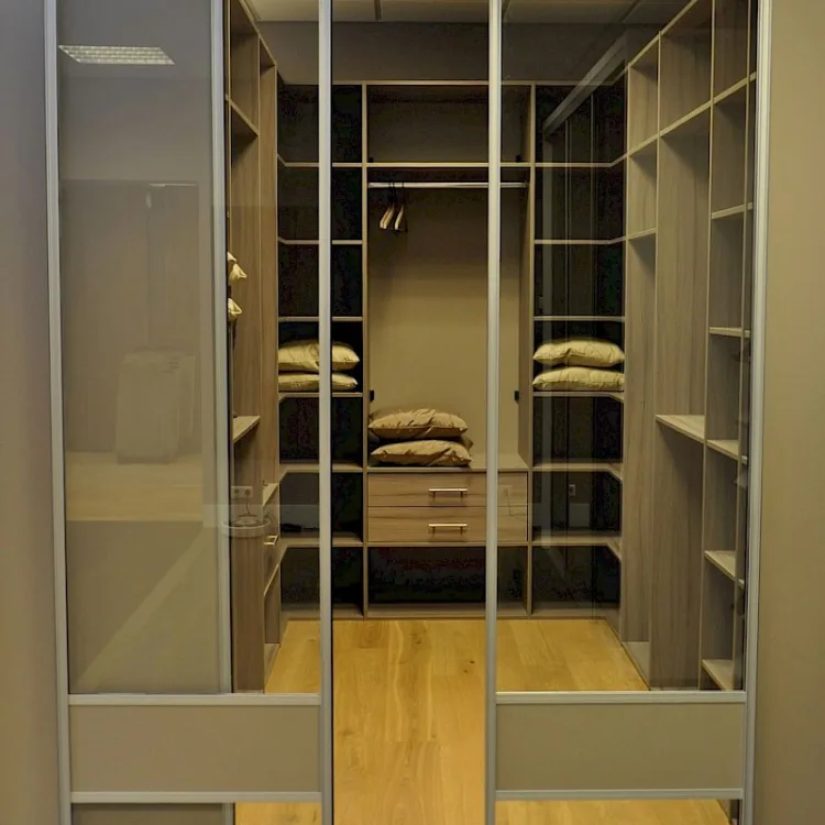 Een inloopkast kan worden voorzien van draai- en schuifdeuren. De schuifdeuren zijn de meest voorkomende deuren voor een inloopkast op maat. Bij een keuze voor schuifdeuren wordt er ook vaak voor glazen deuren gekozen. De glazen deur geeft de inloopkast een luxieuze uitstraling. Bij draaideuren komt het vaak voor dat de kast zich al in een ruimte bevindt of dat de kast zo is ingedeeld dat een draaideur de meest handige optie is.