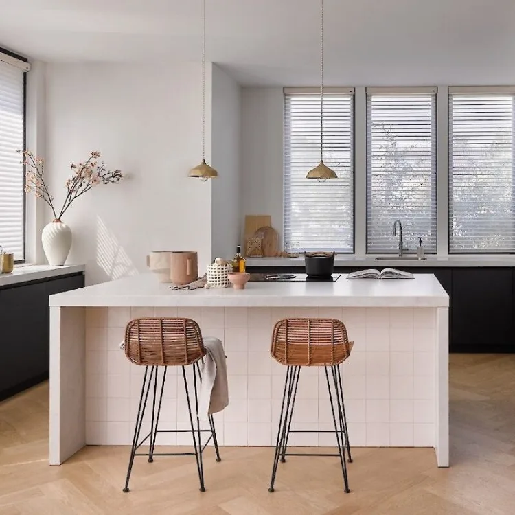 Dat ligt er maar net aan welke horizontale jaloezieën je hebt gekozen. Ben je gegaan voor de tijdloze klassieker; aluminium Jaloezieën of voor stijlvolle, warme houten Jaloezieën? Denk bij beide bijvoorbeeld aan strak en clean wit. Of misschien ben je meer van modern, stoer zwart?