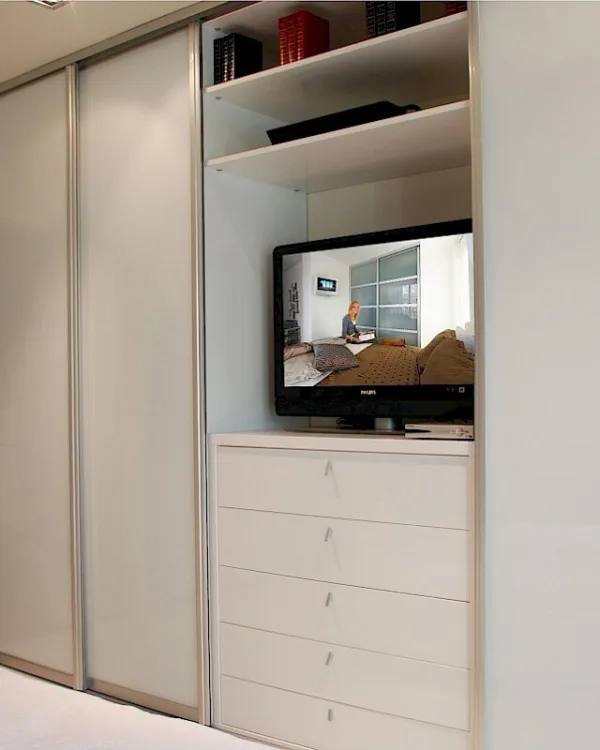Een schuifdeurkast voor de tv is zeker mogelijk, maar niet erg handig in gebruik. Dit adviseren wij alleen als je schuifdeurkast dient voor minder gebruikte spullen, zoals films, recorders etc. Mocht je hier je afstandsbediening in op willen bergen dan adviseren wij een open kast voor het gebruiksgemak. Ook voor de veiligheid adviseren wij een open kast, het kan namelijk zijn dat de tv per ongeluk aan blijft en dit wordt bijna niet opgemerkt achter een gesloten schuifdeur.