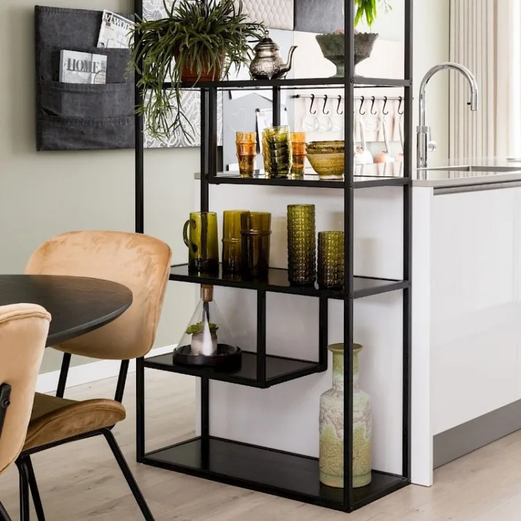 Yes, ga scheiden! En dan bedoel ik natuurlijk de kamers of de indeling van je woonkeuken, woon-slaapkamer of keukentafel-en-hybride-werkplek-in-een :-) Kies voor duidelijkheid, bijvoorbeeld met een open kast of rek met plankjes als roomdivider. Zo gaan je woonkamer en eetkamer van elkaar scheiden en heb je meteen een plek om spullen en planten uit te stallen.