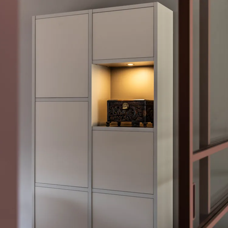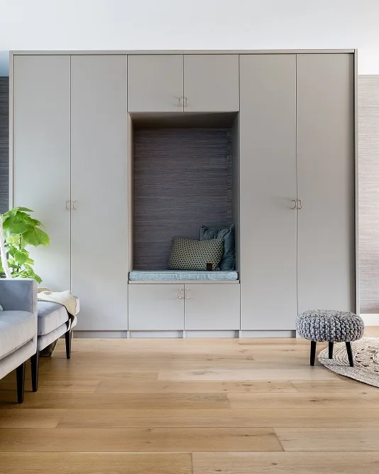 Ook in de woonkamer, met zo'n leuk nisje, staat een draaideurkast prachtig!