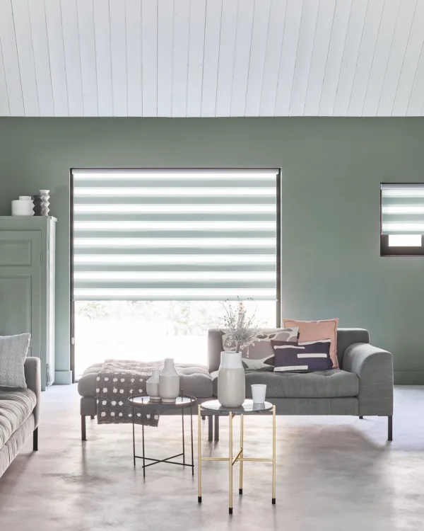 Multishades worden duo rolgordijnen genoemd vanwege hun dubbele laag stof met afwisselend transparante en niet-transparante panelen. Dat maakt ze veelzeidig doordat je zowel de lichtinval als privacy kunt regelen door de lagen over elkaar te bewegen.