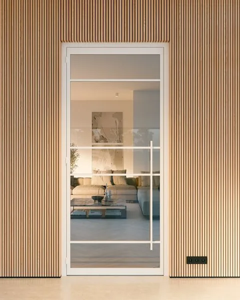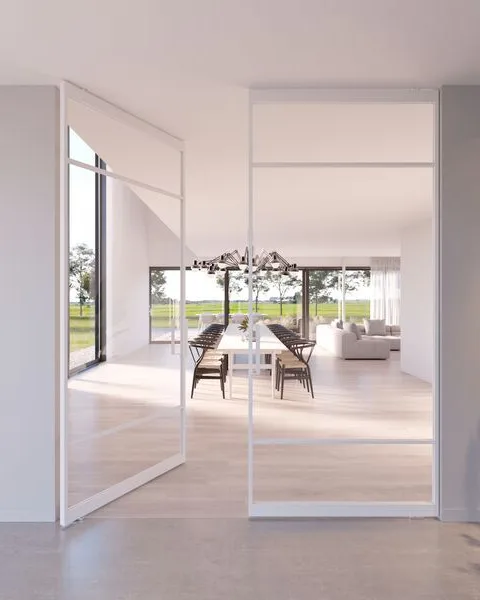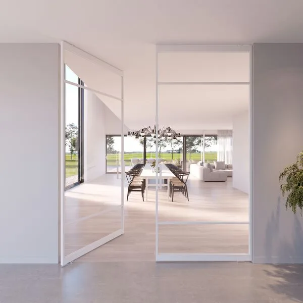 De witte stalen deuren brengen een tijdloos en elegant karakter in het interieur. Ze laten natuurlijk licht binnen, waardoor de kamers helder ogen. Het strakke ontwerp benadrukt de mooie details van het huis. Omdat wit zo'n veelzijdige kleur is, pasten de deuren goed bij allerlei kleuren en stijlen. Ze geven de ruimte een fris en schoon gevoel en zijn zowel praktisch als mooi in het totaalplaatje.
