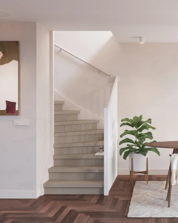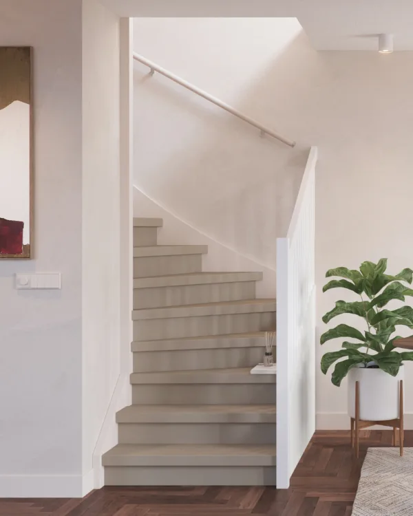 Wil je een unieke eyecatcher in je interieur? Kies dan voor een trap met de uitstraling van beton! Maar hier komt het beste deel: ons beton is eigenlijk balsabeton. Het heeft nog steeds die prachtige matte uitstraling waar je verliefd op wordt, maar het is lichtgewicht, extreem sterk dankzij de glasvezels en voorzien van een waterdichte coating. Dat betekent dat je je geen zorgen meer hoeft te maken over vocht en vlekken! Onze op maat gemaakte traptreden zijn van topkwaliteit en gaan jarenlang mee. Kortom, LeBeton traprenovatie is de perfecte keuze voor een stijlvol en duurzaam interieur.