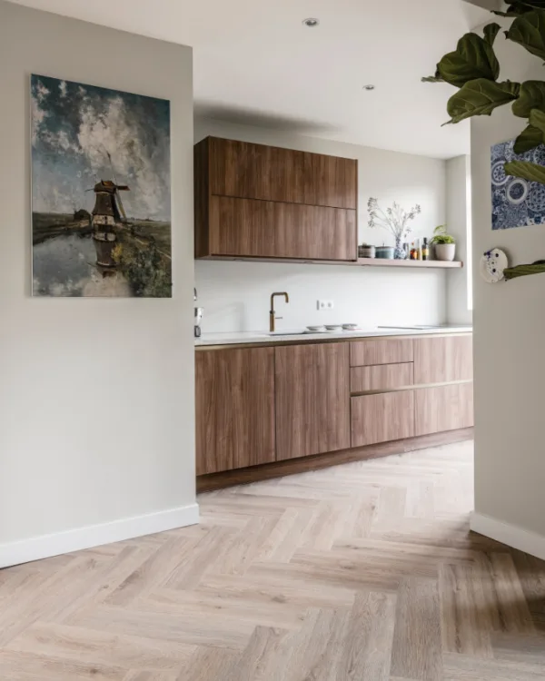 Behalve dat clickvinyl heel sterk, krasbestendig en niet vlekgevoelig is, is het ook erg waterbestendig. En daarmee uitermate geschikt voor vochtige ruimten als een keuken of een badkamer. Rondom een wasbak of vaatwasser waar ‘spatwater’ aanwezig is of waar weleens iets valt, is pvc heel geschikt. We merken graag op dat clickvinyl zich het best in de badkamer onderhoud wanneer er een douchebak aanwezig is. Wij raden niet aan om clickvinyl in de douchehoek te leggen.