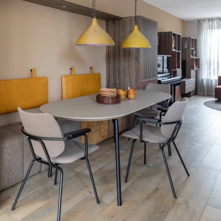 Fietje mocht deze week aan de slag bij Borinda & Wannes in Gorichem. Een warm stel die, samen met hun 3 dochters, onwijs verliefd zijn op hun huis alleen niet op de inrichting. Want de totaal landelijke inrichting, past helemaal niet bij hun smaak. Alles in huis is flets, nietszeggend en gedateerd, het tegenovergestelde van hoe ze zijn! De smaak van Borinda is Mediterraans /Marokkaans met kleur en knusheid. Voor Wannes hoeft kleur niet persé, met zijn kleurenblindheid ziet hij daar toch niet veel van. Geef hem maar staal, roest en leer. Stoer tegenover veel kleuren. Is dat iets waar Fietje iets mee gedaan heeft? Natuurlijk! En dat heeft ze zeer geslaagd voor elkaar gebokst.