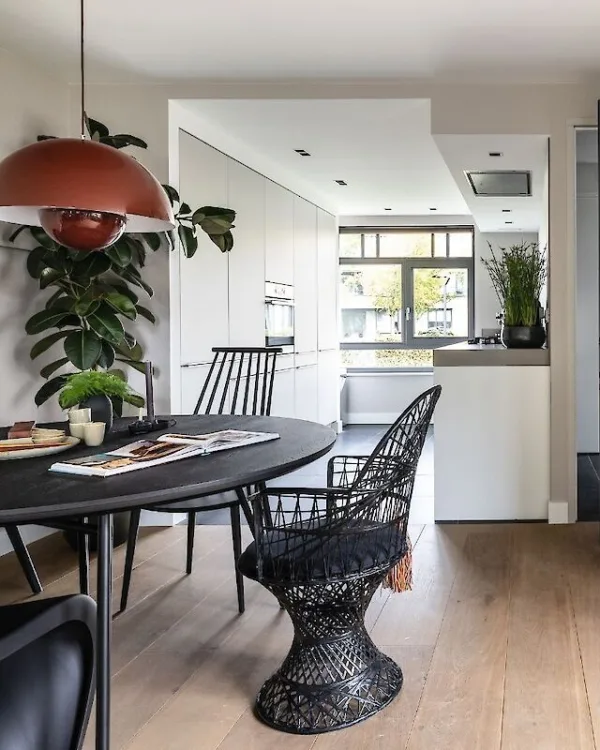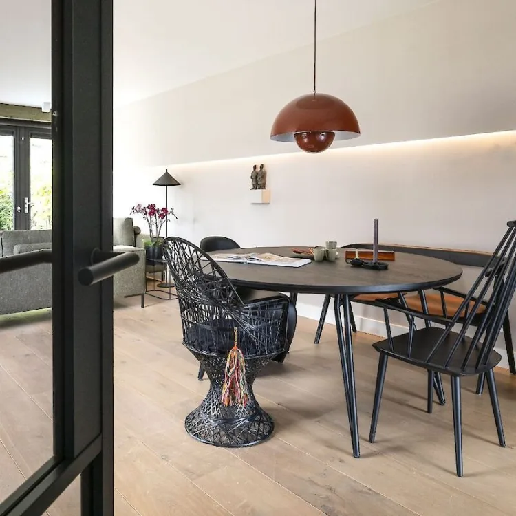 Tadaa, het resultaat is echt een fijne mix van beide stijlen. Zo ook als het gaat om de raambekleding. Frans heeft gekozen voor Inside rolgordijnen, type Lindo 100/L/100 08-08 die elektrisch te bedienen zijn. Sean van Slimmer Wonen hebben we weer ingeschakeld om de boel te installeren voor Jill & Maik.