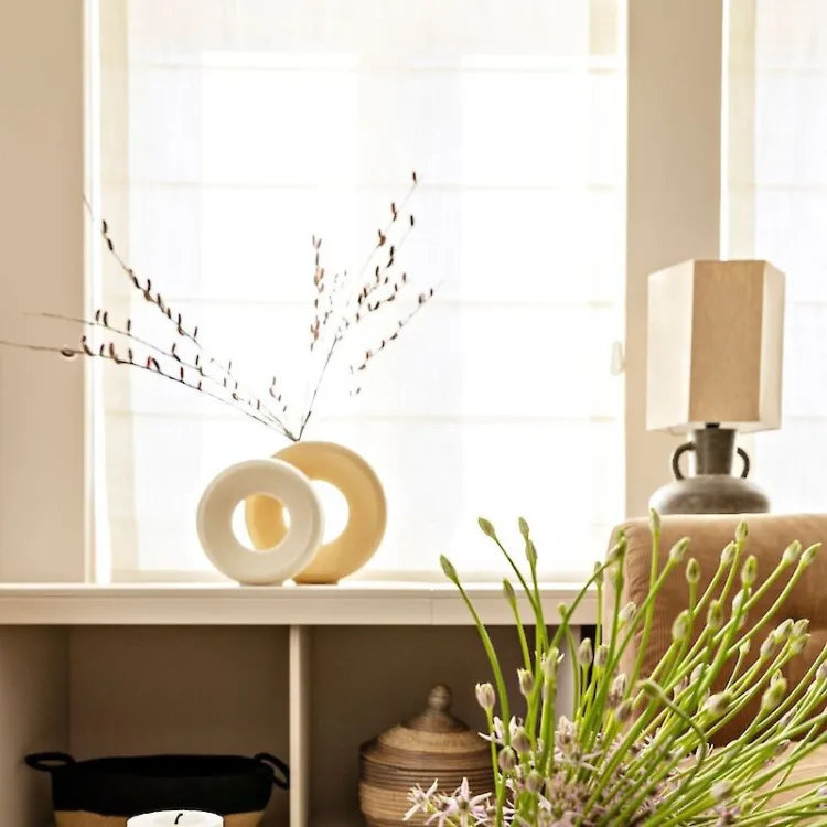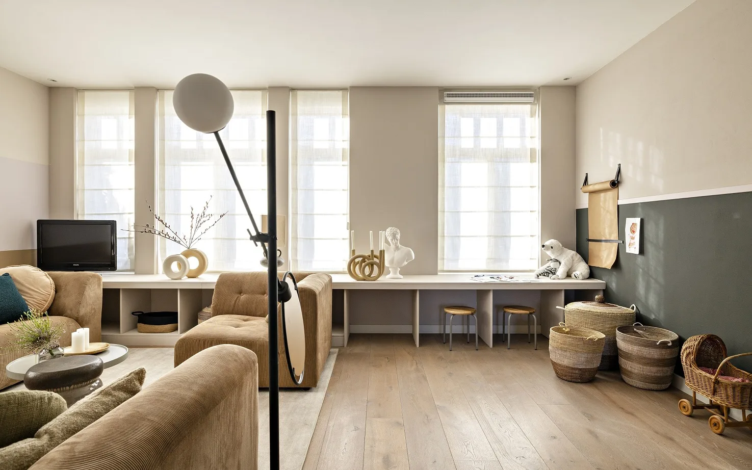 Voor de woonkamer heeft Fietje een gezellige sfeer gecreëerd, met vouwgordijnen. Vouwgordijnen geven je interieur een bepaalde warmte mee. Door te kiezen voor semi transparante stof behoudt je lichtinval thuis maar weer je wel inkijk van buitenaf, zo heb jij licht én privacy.