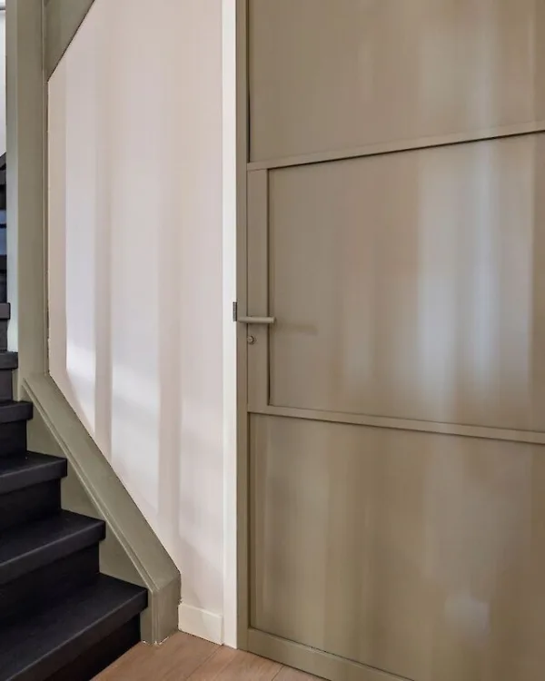 De stalen deuren maken het interieur helemaal af! Daarbij is er gekozen in de hal voor een gouden stalen deur met rookglas. Hierdoor krijg je enige doorkijk, waardoor de kamer groter lijkt.