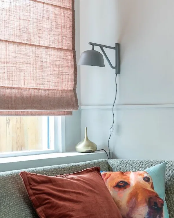 Ook wat de raamdecoratie betreft, gaat hij voor meer sfeer en gezelligheid. De gordijnen die er hingen worden vervangen, want deze namen teveel ruimte in beslag. Frans kiest voor vouwgordijnen. De semi-transparante vouwgordijnen van Luxaflex® in de kleur 9859 Kara maken de woning licht, maar bieden ook privacy. De vouwgordijnen passen zowel bij de Amerikaanse saloon van Martijn als bij de wens voor meer kleur in huis van Marjolein.