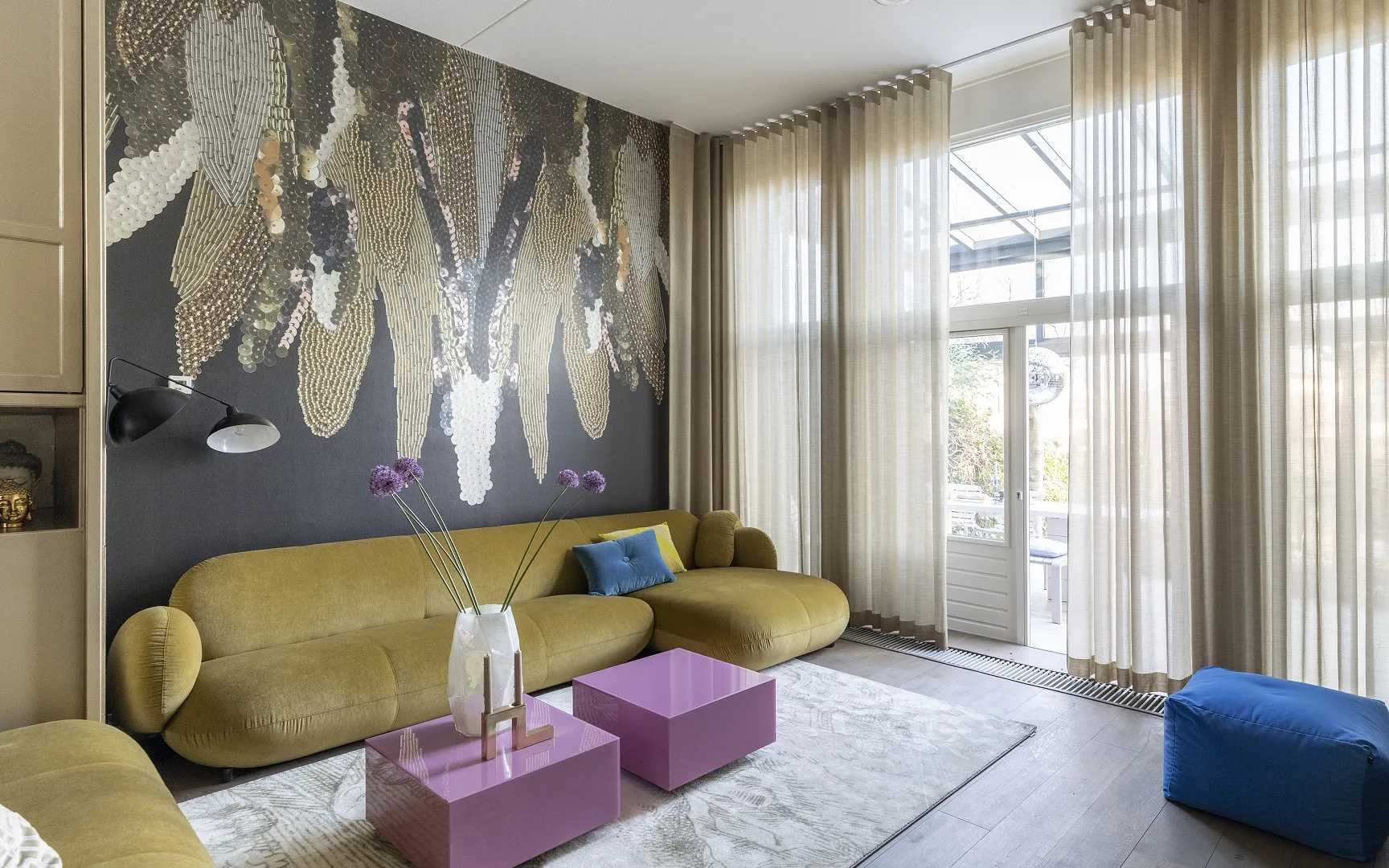 En hoe mooi is het dat Marianne hier twee verschillende kleuren kiest. Dit past helemaal in de excentrieke stijl van Bas! Maar de strakke vouwgordijnen matchen dan weer bij de wens voor modern van Eddie. Perfect gecombineerd dus.