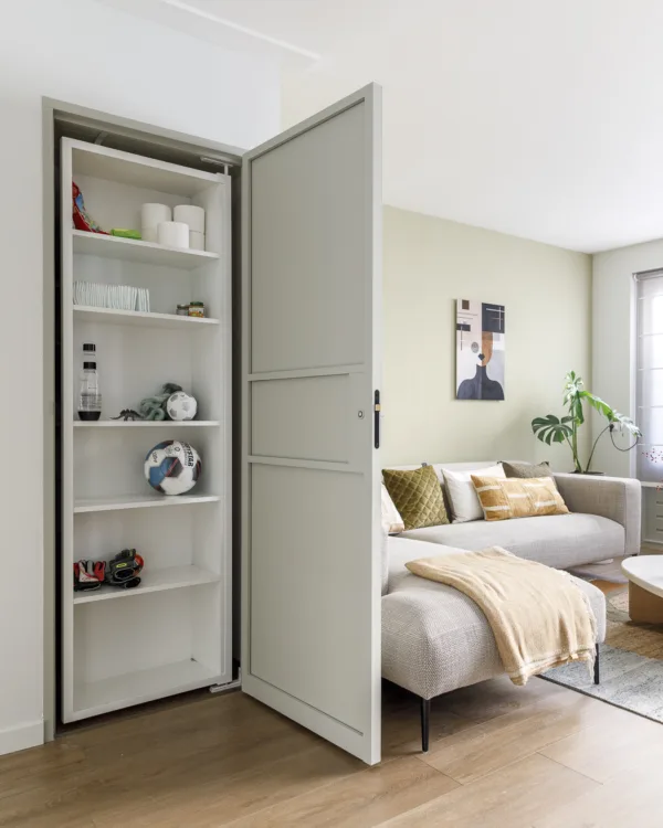 Om het wel overzichtelijk te houden en de rommel mooi weg te kunnen werken, is de deur van de voorraadkast voorzien van dichte panelen. Zo is de voorraadkast mooi afgeschermd. Wist je al dat je bij Aanhuis.nl ook zulke mooie stalen deuren kunt vinden, in wit, zwart of zelfs brons?