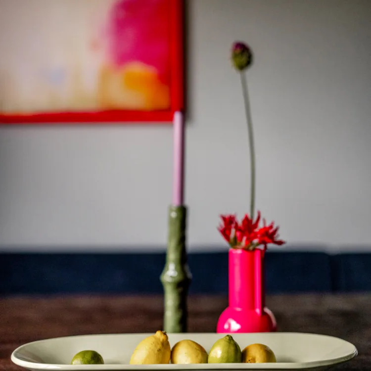 Joëlle is namelijk gek op kleur. En dan hebben we het over geweldig sprekende kleuren, zoals kobaltblauw en okergeel. Het kan haar allemaal niet gek en uitbundig genoeg. Daniël daarentegen maak je juist blij met rust. Lichte tinten, niet teveel kleur, gewoon een mooie rustige basis. Nou Fietje, we zijn benieuwd wat je tevoorschijn tovert!
