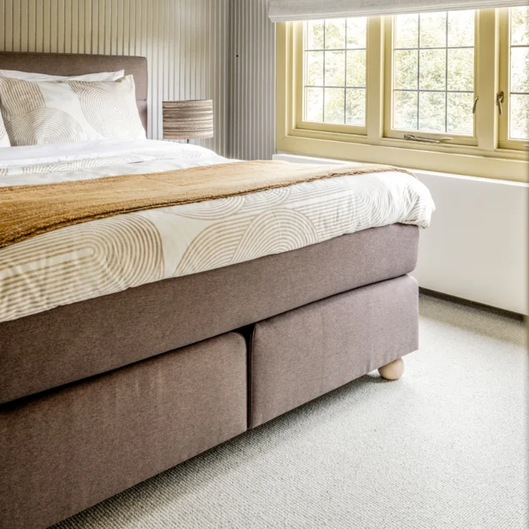 Als je dan van die heerlijk verduisterende vouwgordijnen in je slaapkamer hebt hangen, dan verwacht je volledig comfort als je het bed uit stapt. Met je voeten op een fijne, warme, comfortabele vloer; tapijt dus.
